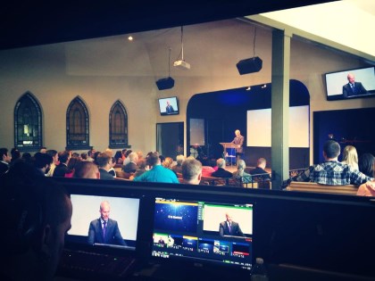 Their main production is then live streamed in full HD to their secondary location using the Cloud Media Group streaming. This allows them to have both Churches see the same sermon at the same time.